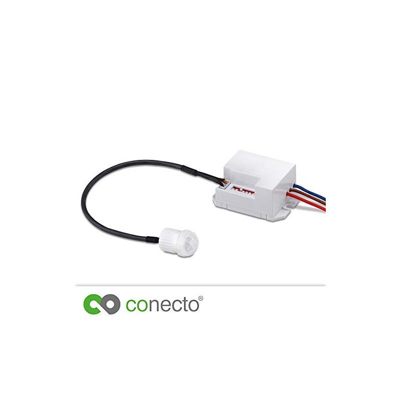 - conecto Infrared motion sensor for flush-mounted ceiling mounting indoors. Automatically turns on and off of lamps, lights, LEDs by motion detection.