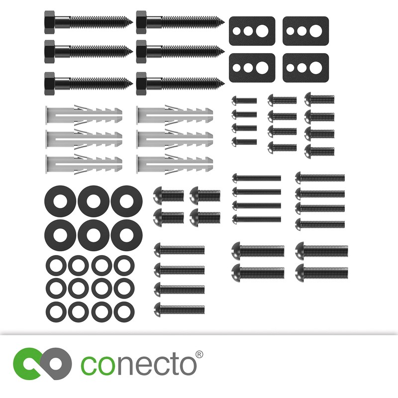 conecto Vesa Screws Set, 64 Pieces, Ideal for TV Mounting, TV Wall Mount, TV Bracket, Mounting Screws with Dowels and Washers, Black