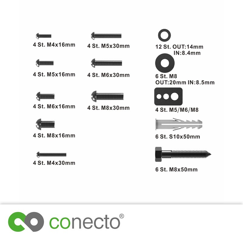 conecto Vesa Screws Set, 64 Pieces, Ideal for TV Mounting, TV Wall Mount, TV ...
