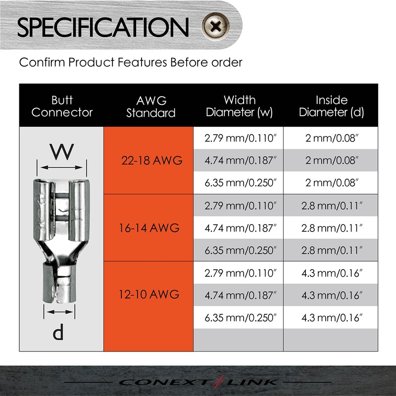 Conext Link QDUF-187R25 Uninsulated Quick Disconnect Terminal Female 25 Pack (0.187", 22-18 Gauge)