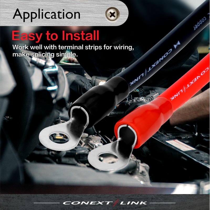 Conext Link RTB48-20 Ring Terminal with Red Black Boot 5/16" 8mm Stud hole 20 Pack (4 Gauge) (16513)