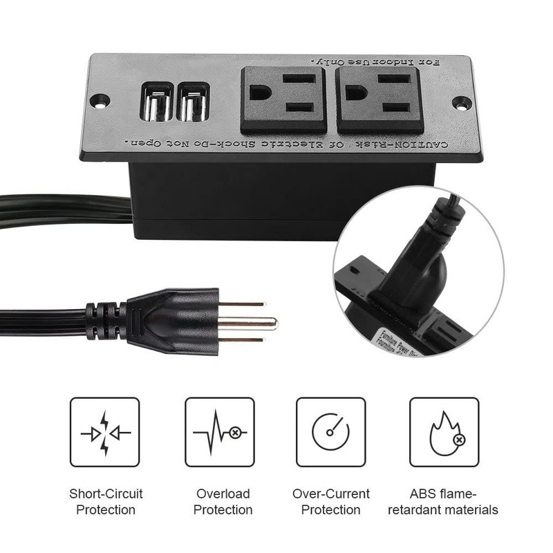 - Easy to Install:Cut a rectangle in Table, place the Table Power Strip in then screw it tight.Hole cut size: L 3.8" * W 1.75" * H 1.5" .