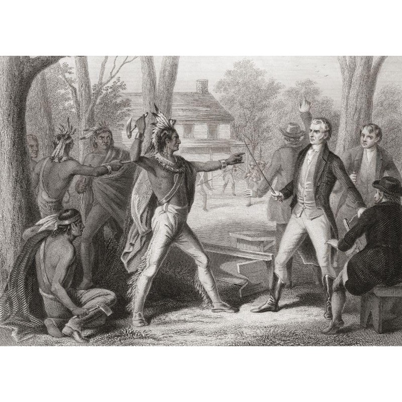 Confrontation between Tecumseh and William Harrison in August 1810. Tecumseh was demanding that the 1809 Treaty of Fort Wayne be rescinded. The treaty which Tecumseh did not recognize gave settlers in Indiana and Illinois nearly 30 million acres of Nativ