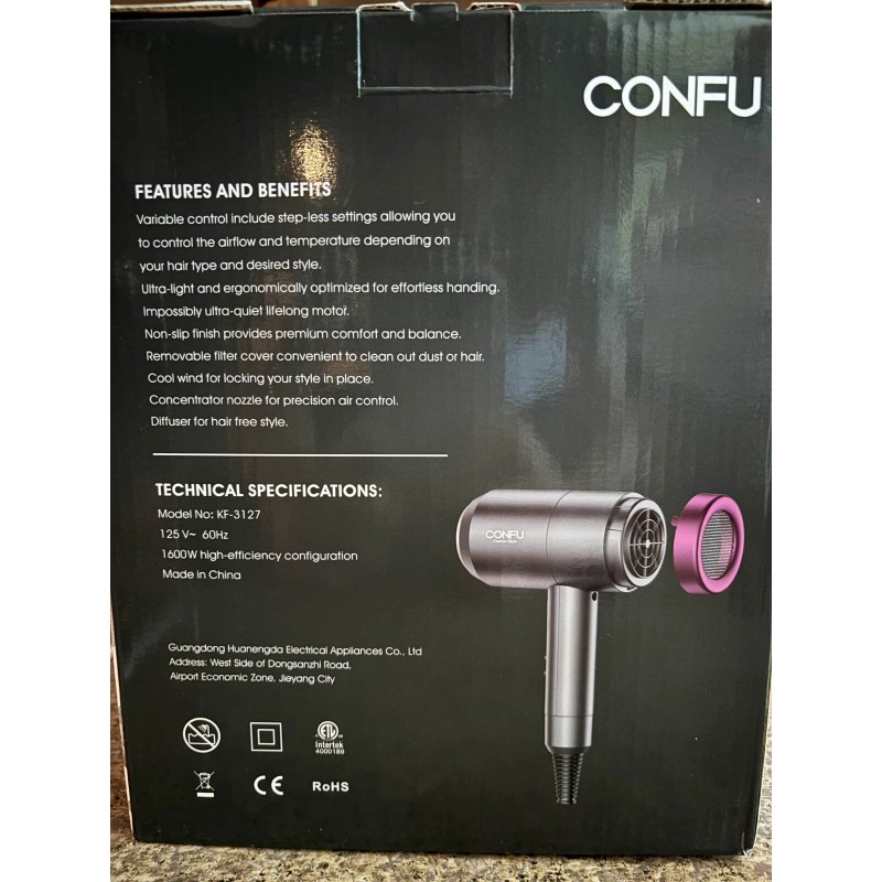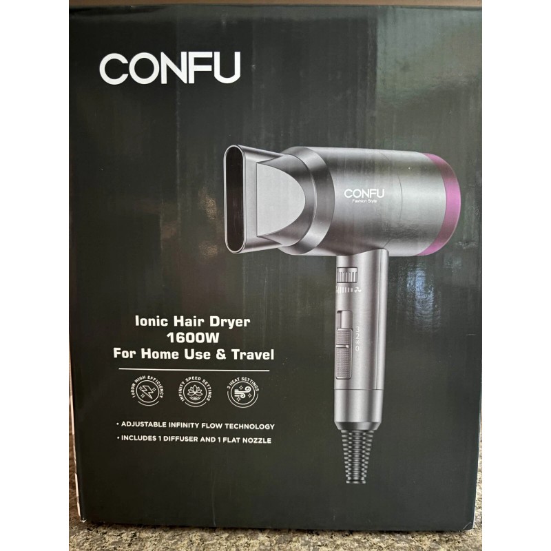 CONFU Ionic Hair Dryer, CONFU 1600W Portable Lightweight Blow Dryer, 3 Heat Settings
