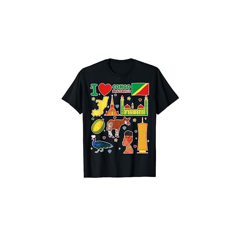 - Congo-Brazzaville maps with Congolese tourist Attractions Shirt. I Love Congo T-Shirts for women, men and kids Landmarks and symbols of Republic of the Congo with Congolese flag for National Day, birthdays, anniversaries, Congo travel destinations