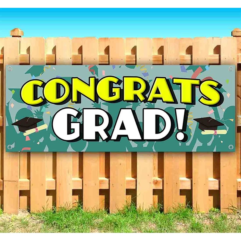 Congrats Grad Banner 13 oz | Non-Fabric | Heavy-Duty Vinyl Single-Sided With Metal Grommets