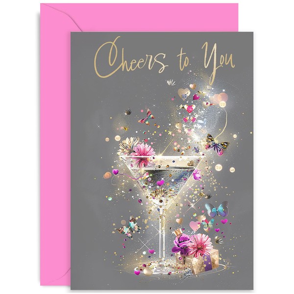 Congratulations Card for Women - Stylish Female Birthday Card - Cheers to You - Well Done Gifts for Her - Graduation Card for Daughter Sister - 30th 40th 50th Birthday Card