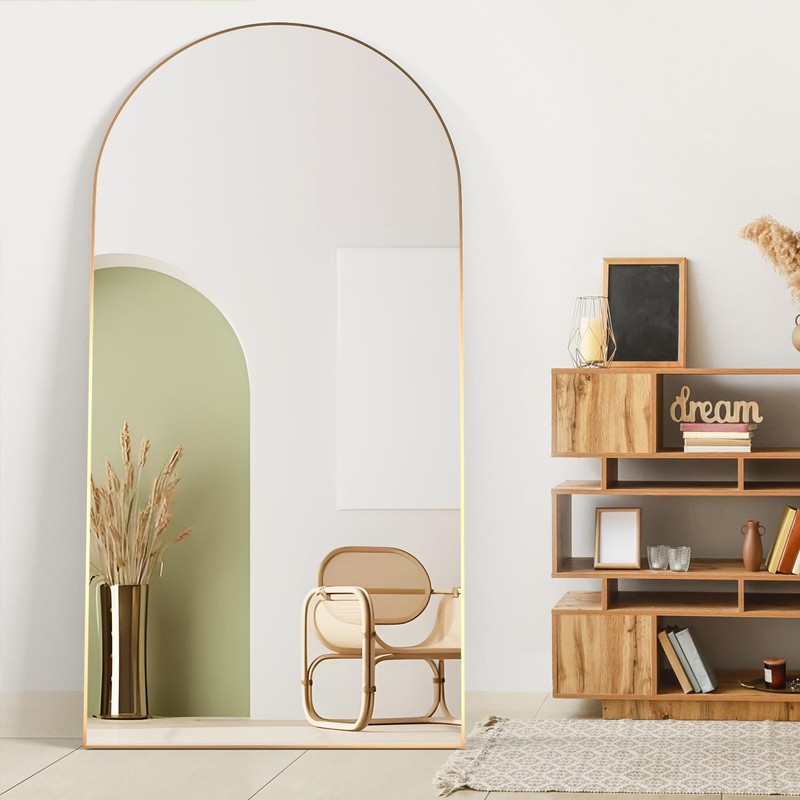 - 💝Arched Design: The top of the full body mirror uses an arched top frame design. Aluminum frame, the entire glass mirror is not surrounded by the frame, it is independent of the frame, making the entire mirror look very unique and upscale
