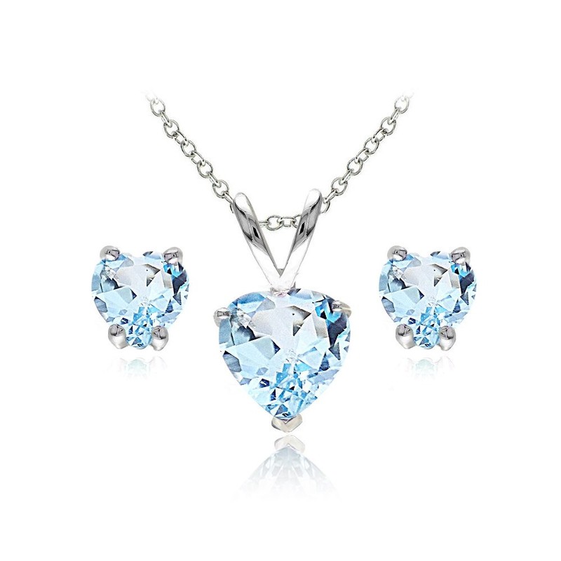 - Características: este encantador juego de joyas para mujer muestra un colgante de corazón solitario con aretes solitarios a juego. El colgante cuenta con una brillante gema de corazón de topacio azul de 7 mm y los tachuelas de topacio cuentan con piedras en forma de corazón de topacio azul de 5 mm. Este juego de collar y aretes debe ser una adición a tu colección de joyas de topacio fino y piedras preciosas.