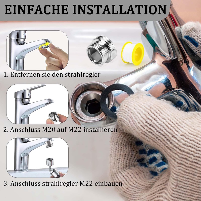 - Easy installation: with this adapter, you can replace or install fittings and aerators quickly and easily. It is easy to install and can be easily screwed on and off with standard tools. Together with the rubber seal, the adapter ensures a reliable, tight connection and effectively prevents leakage.