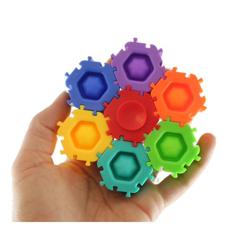 - INCLUDES 1 SET SPINNER BUBBLE POPPERS (7 PIECES) - This fidget toy is a 3 in 1 fidget toy, it combines the classic fidget spinner with the bubble popping toy, and connecting blocks.