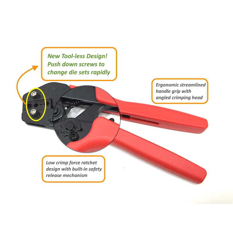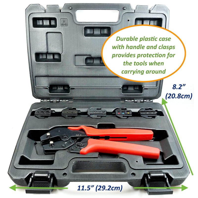 ConnectoRF Quick Interchangeable Ratchet Crimping Tool Kit with Plastic Case for Insulated & Non-insulated Wire Terminals Crimper With 5 Die Sets