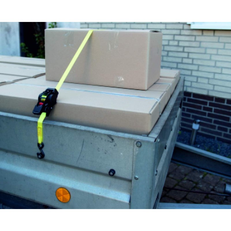 - Product details: dimensions: 2 m x 18 mm, material: polyester, design: one piece, clamping element: clamping ratchet, end fitting: S-hook, colour: yellow
