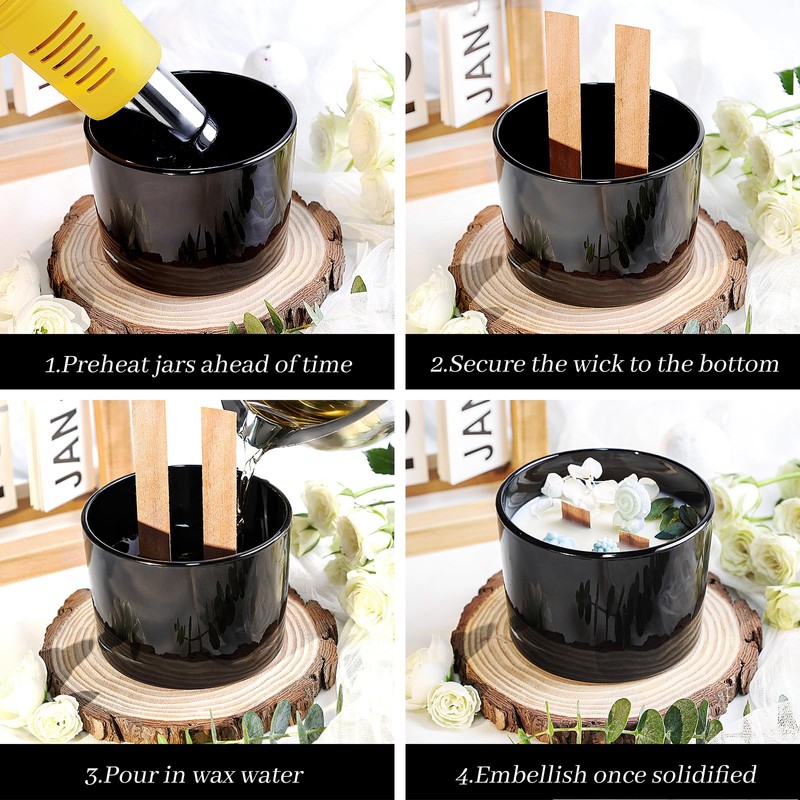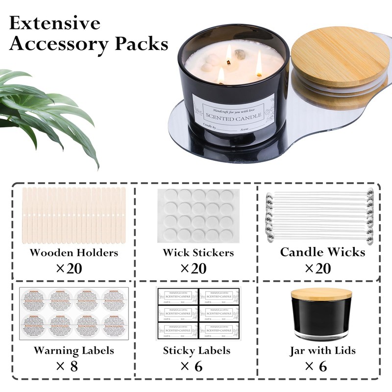 - 【Value Candle Making Kit】: You'll Receive 6 x 16 oz Black Glass Candle Jars with Bamboo Lids, 20 Wicks, 20 Wick Stickers, and 20 Wick Holders. Additionally, 6 Sticky Labels and 8 Warning Labels are Included for Your Daily Candle Making Needs!