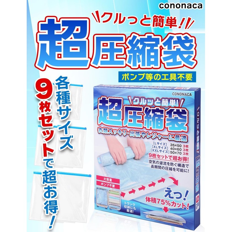 cononaca [Super Easy Pack] Travel Clothing, Comforter, 3 (L, 3 XL, 3 XXL)