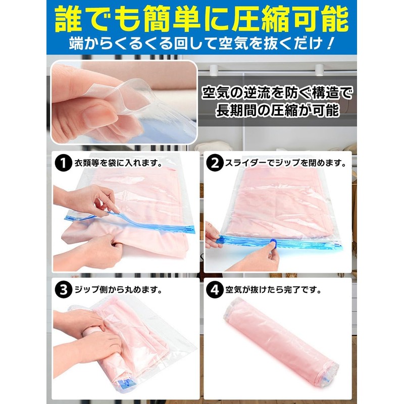 - [Clothing Protection] It is air-tight and vacuum resistant for a long time, and it will keep your clothes well from moisture, dust, mold, bugs, and unpleasant odors. This prevents clothes from deforming and wrinkling and helps you organize items that are not used for every season. Not only is it convenient for traveling, but it is also convenient for changing clothes and moving