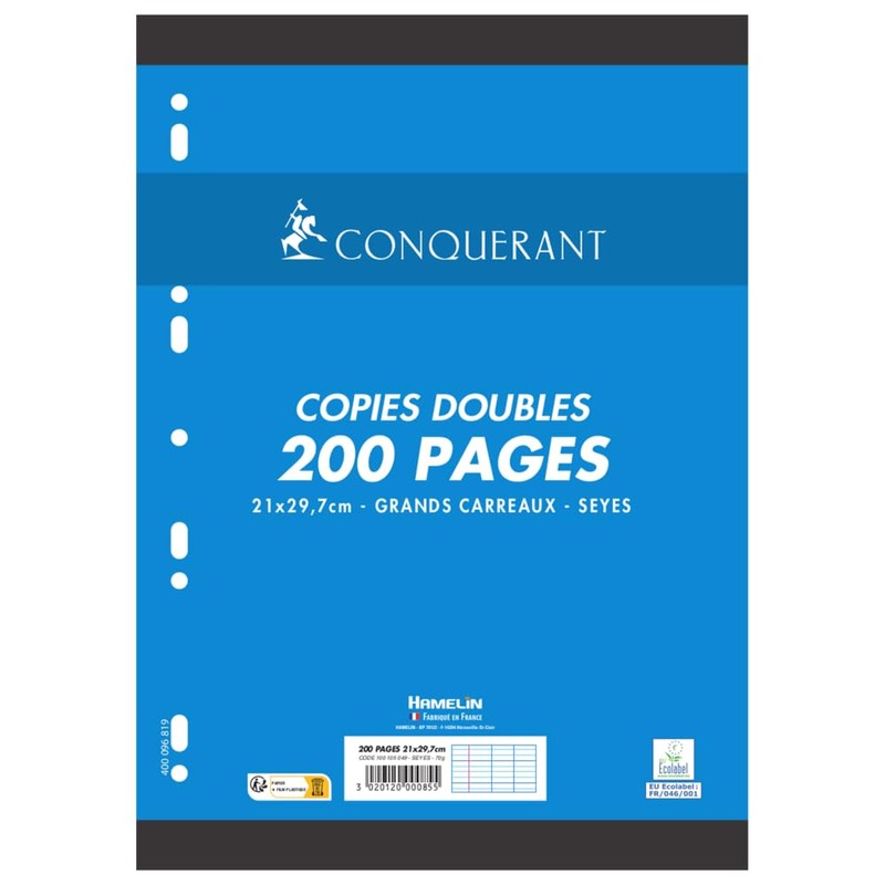 Conqueror A4 Punched Papers Double 200 Pages 70 g large squares Seyès