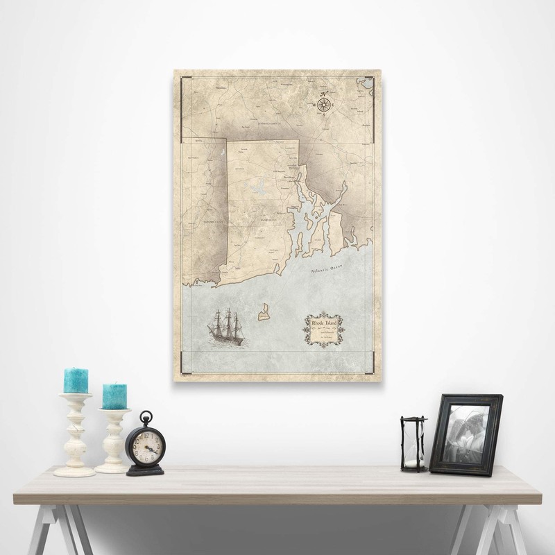 Conquest Maps Push Pin Rhode Island Map Board - With Push Pins to Mark Rhode Island Travels - Handmade in Ohio, USA - Design: Rustic Vintage