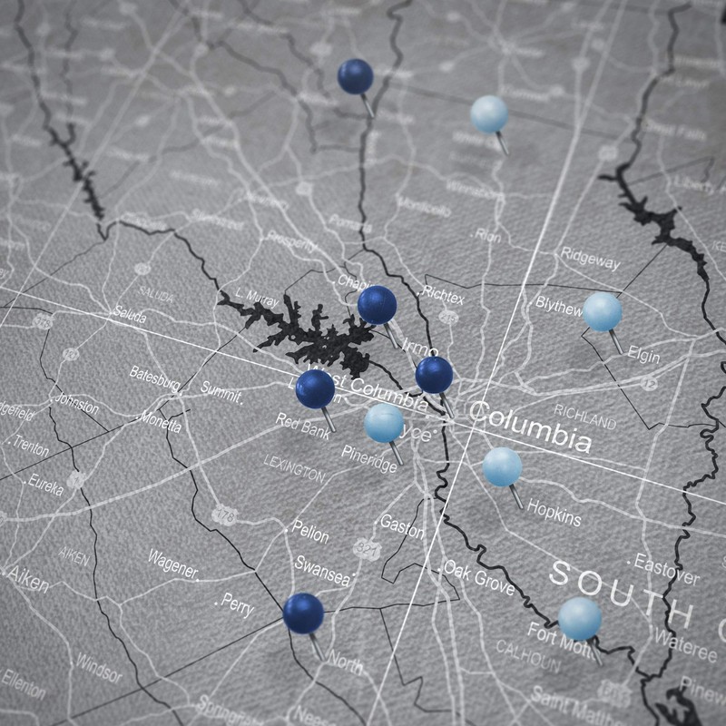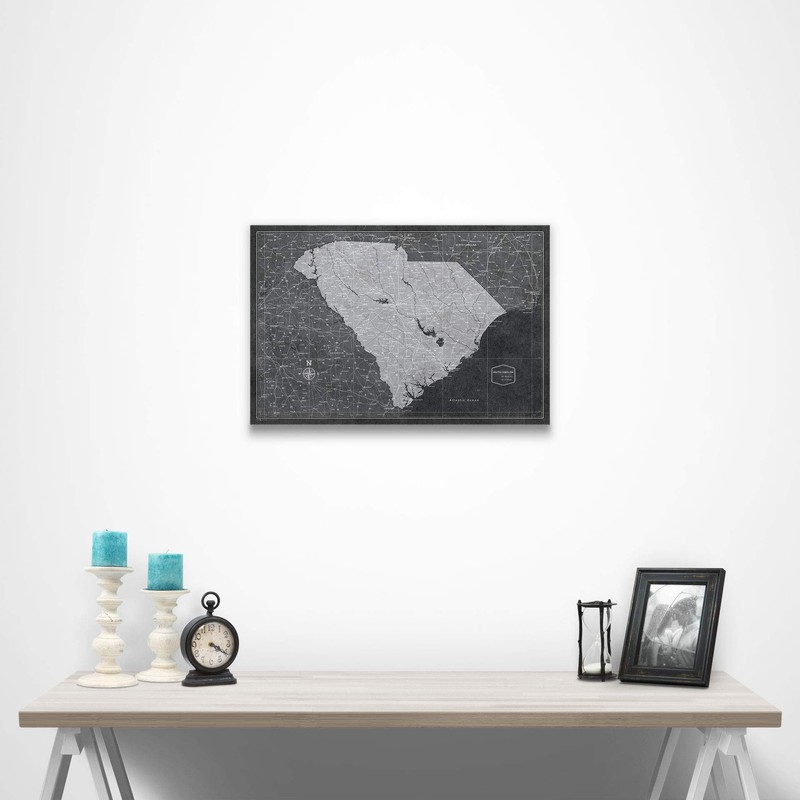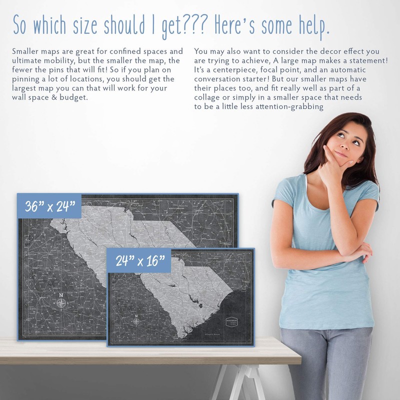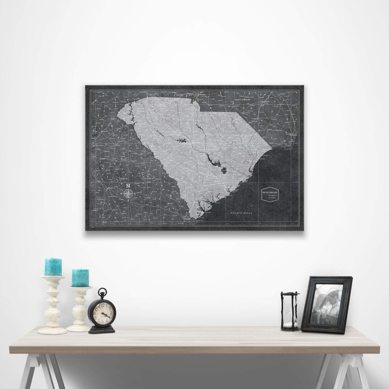 Conquest Maps Push Pin South Carolina Map Board - With Push Pins to Mark South Carolina Travels - Handmade in Ohio, USA - Design: Modern Slate