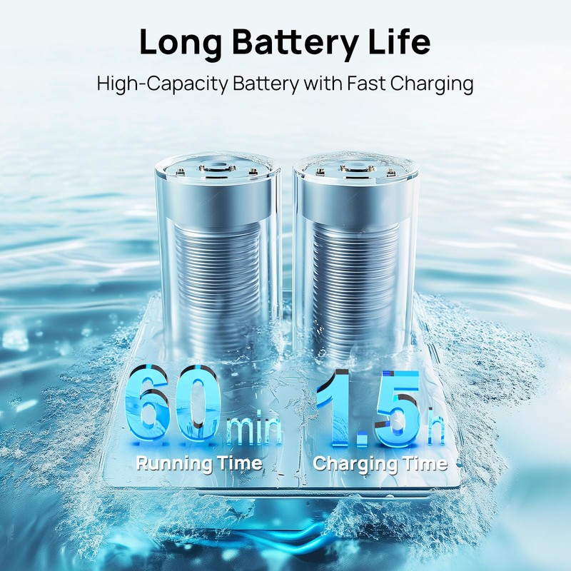 - 【Extended Battery Life with Quick Recharge】Runs on a potent rechargeable lithium battery, ensuring up to 60 minutes of continuous cleaning. Selected models feature quick-charge capabilities, reaching full charge within only 1.5 hours for maximum operational efficiency.
