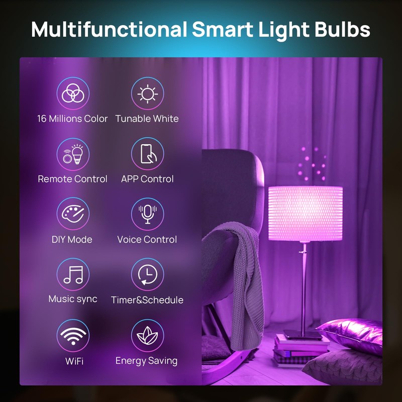 - [Timer and Schedule] With the timer function, it's easier than ever to set your bulbs to brighten in the morning and gradually dim as you fall asleep. Brightness is adjustable from 3-100%, This convenient feature makes it simple to incorporate smart lighting into your everyday life.
