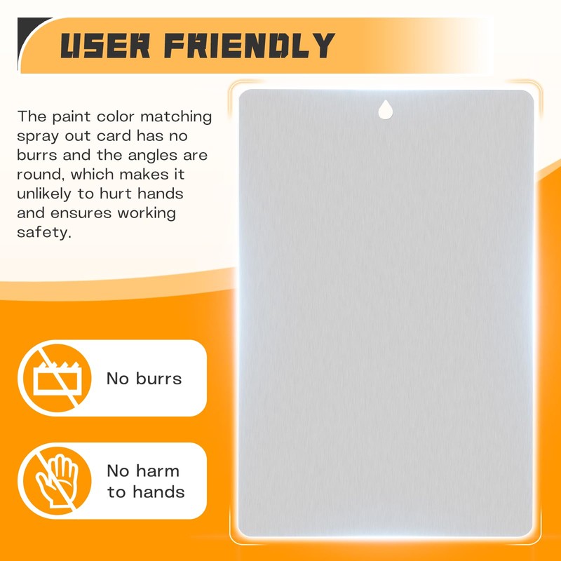 - Dimensions: The paint color matching spray out card is rectangular. Length: 5.9 inches, width: 3.9 inches, thickness: 0.08 inches, 100 pieces. Can meet your various spraying needs. It has no burrs and the angles are round, which makes it unlikely to hurt hands and ensures working safety.