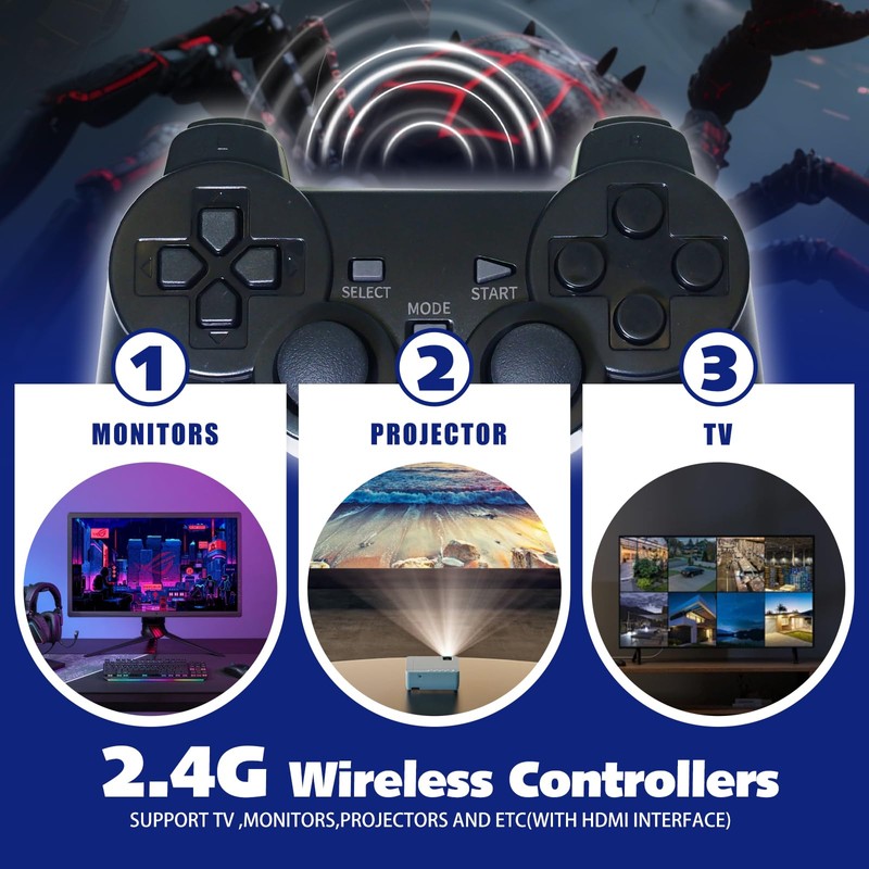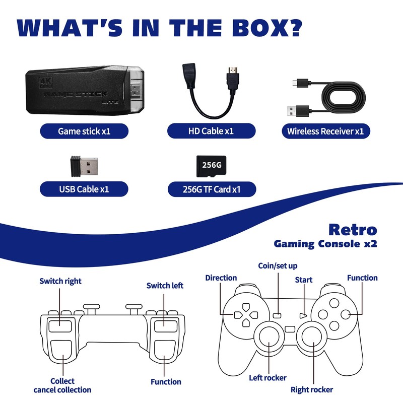 - Configuración rápida y fácil: no se necesitan habilidades técnicas: la configuración tarda solo unos minutos. Simplemente conecta el cable HDMI a tu televisor, inserta la tarjeta TF incluida, conecta el adaptador de corriente y cambia tu televisor al canal HDMI correcto. ¡Estás listo para jugar!