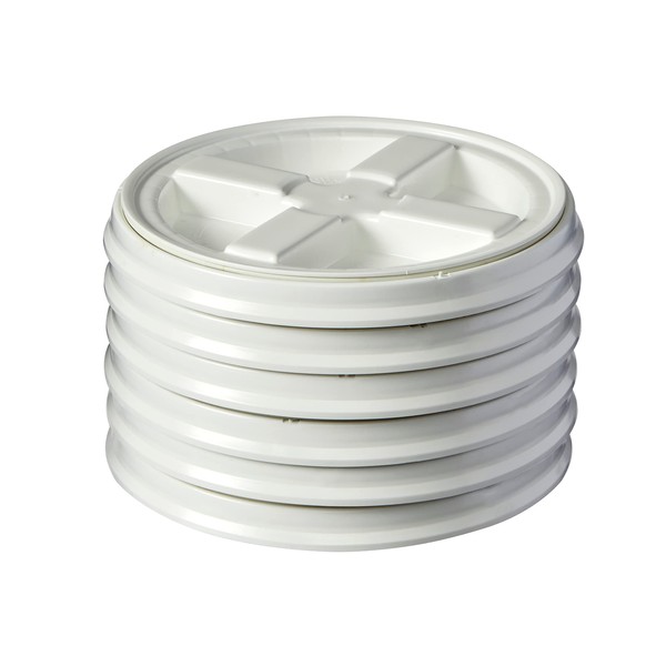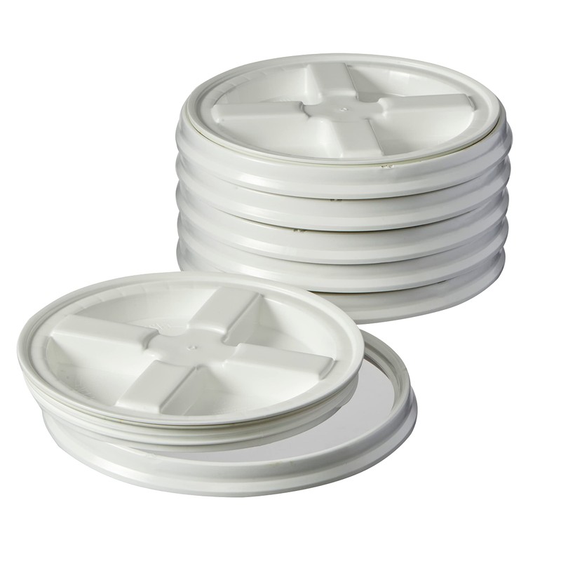 Consolidated Plastics White Food Grade Gamma Seal Lids for 2 Gallon Buckets (6 Pack) BPA Free Reusable Pail Lids, Durable HDPE, Made in USA
