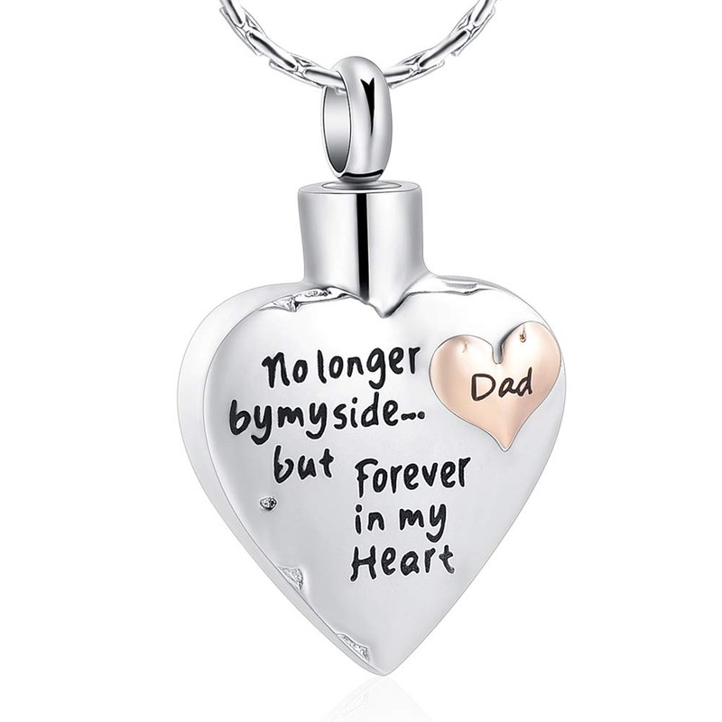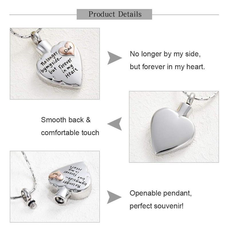 constantlife Cremation Jewelry for Ashes - No Longer by My Side But Forever in My Heart Heart Shape Pendant Memorial Urn Necklace Keepsake Gift for Women (Dad)