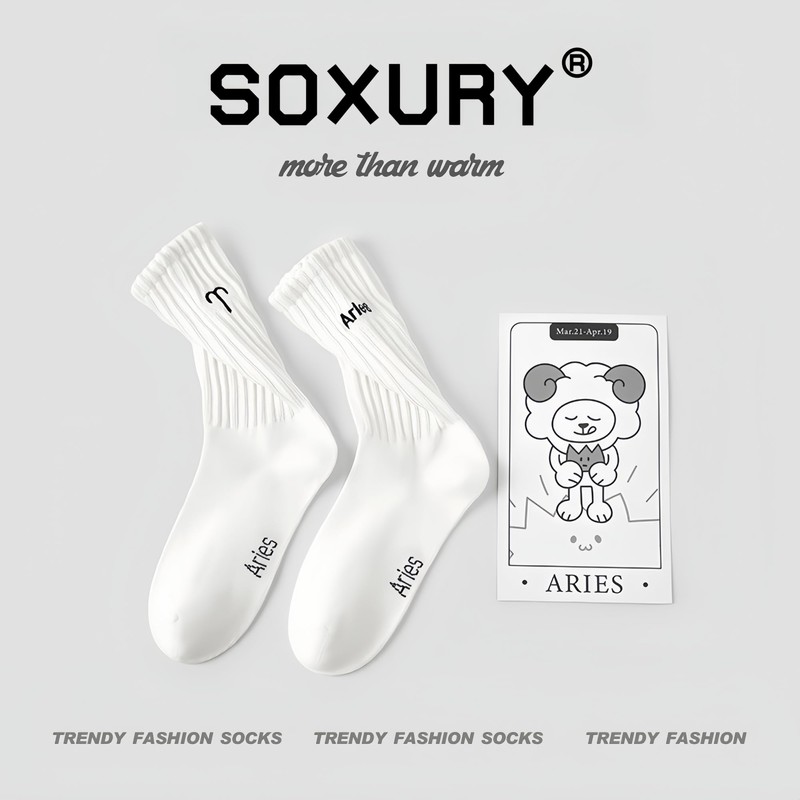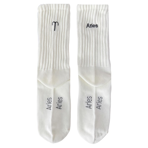 Constellation Socks Crew White Cotton Mid Calf Scrunch Slouch Boot Cozy Vintage Retro Cute Casual Fashion Funny Socks (US, Numeric, 5.5, 9.5, Regular, Regular, [ARIES]Constellation Series)