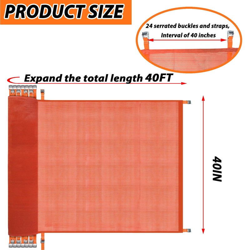 40' L x 40" W Construction Safety Debris Netting with 24 Tapes & Buckles, Orange Fire Retardant Pump Jack Safety Net, Scaffold Safety Netting Rolls Scaffold Net Enclosure
