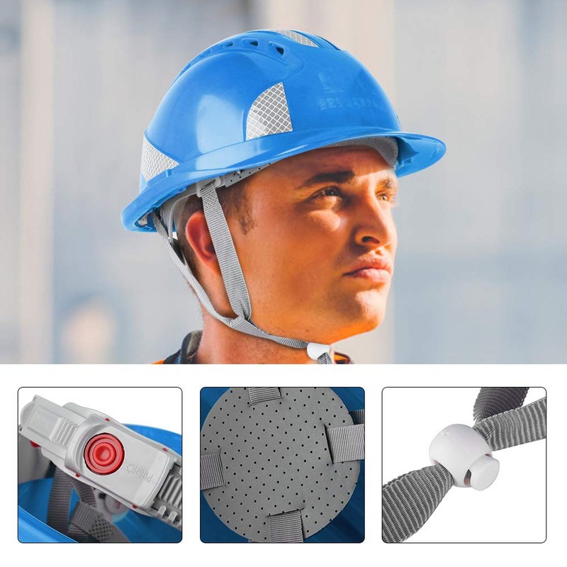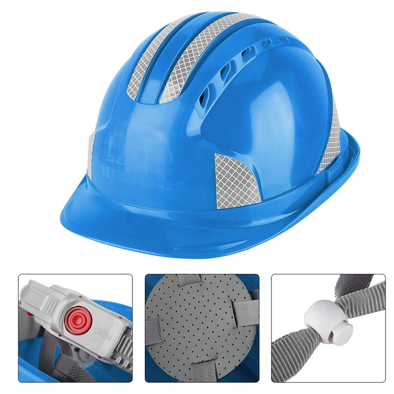 Construction Site Protective, Ventilate ABS Hard Hat Reflective Cap Stripe Safety Helmet(Orange) (Blue)