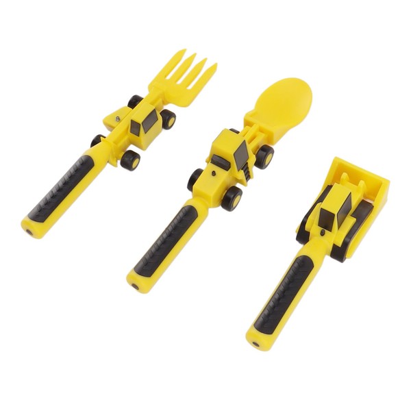 - [CONSTRUCTION THEMED UTENSILS] - Make mealtime an adventurous playtime with this construction themed eating utensils set. It includes a spoon, fork, and pusher.