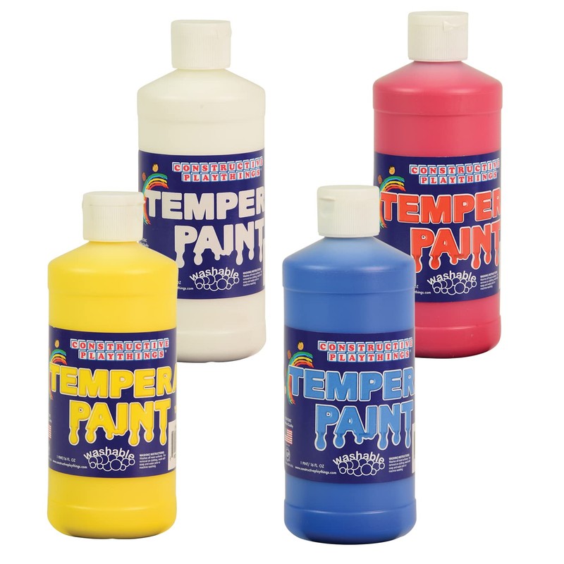 Constructive Playthings Kids 4-Color Tempura Paint Pints Set, Bright Washable Paint for Classrooms and DIY Crafts, Primary