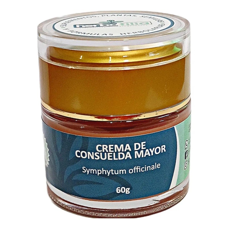 ## Beneficios Clave de la Crema de Consuelda Mayor 🌱 * 💧 Hidratación profunda para tu piel. * 🌿 Fórmula natural con fragancia a Consuelda. * 😌 Apta para pieles mixtas e hipoalergénica. * ⏳ Efecto hidratante prolongado. * 🖐️ Alivio y cuidado para la zona afectada.