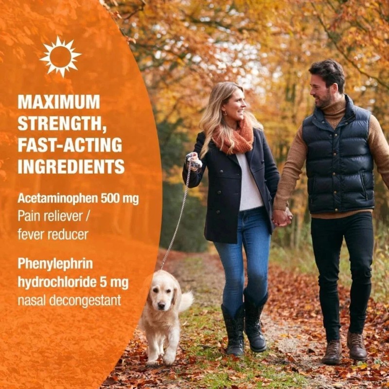 Don't let colds and flu slow you down. With Contac Daytime Non-Drowsy Cold & Flu Relief caplets, you can seize the day with confidence, knowing that relief is just a caplet away. Our maximum strength daytime cold & flu medicine is specially designed to tackle the most bothersome cold and flu symptoms, offering you a fast-acting solution to nasal congestion, headaches, body aches, sore throat, and fever. Unlike other over-the-counter remedies, Contac Cold +Flu Daytime cold medicine ensures you stay alert and awake, thanks to our non-drowsy formulation. Perfect for those who need to stay on their game, whether it's a day at work, school, or just daily chores. Each pack contains 24 easy-to-swallow caplets, offering ample coverage for those unexpected sick days. Suitable for adults and children over 12, it’s an essential addition to every household’s medicine cabinet. Trust in the legacy of Contac – your partner in cold and flu relief.
