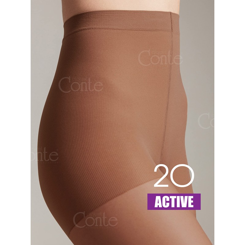 Conte Sheer Full Support Compression Pantyhose Tights with Control Top Active 20 Den, Brown (Mocca), Large