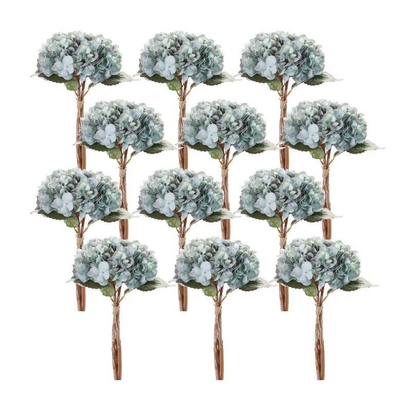 Contemporary Home Living Set of 12 White and Green Polyester Hydrangea Bundle 14.50”