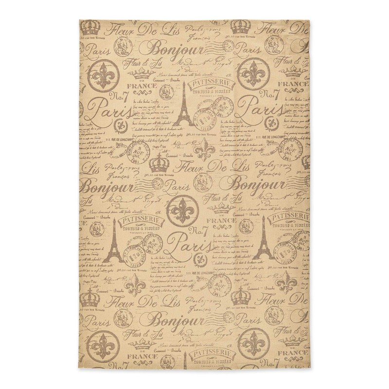 Contemporary Home Living Set of 4 Beige and Brown Paris Inspired Rectangular Dish Towels 28"
