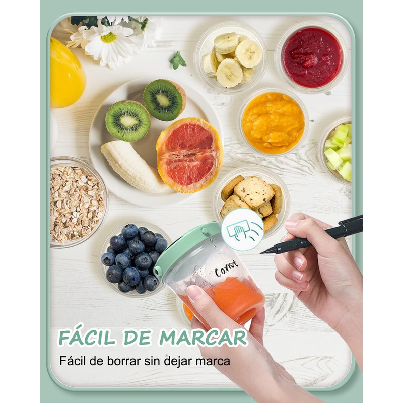 - ✔️【Vida conveniente】 - Fabricado con materiales fáciles de limpiar, no solo es fácil de limpiar, sino que también se puede marcar en el cuerpo de la botella con el contenido o la fecha de fabricación. Después de marcar con un paño seco, se puede reutilizar. Es la elección ideal para conservar alimentos en el hogar y durante viajes, proporcionando alimentos saludables y deliciosos para el bebé y haciendo la vida más fácil.