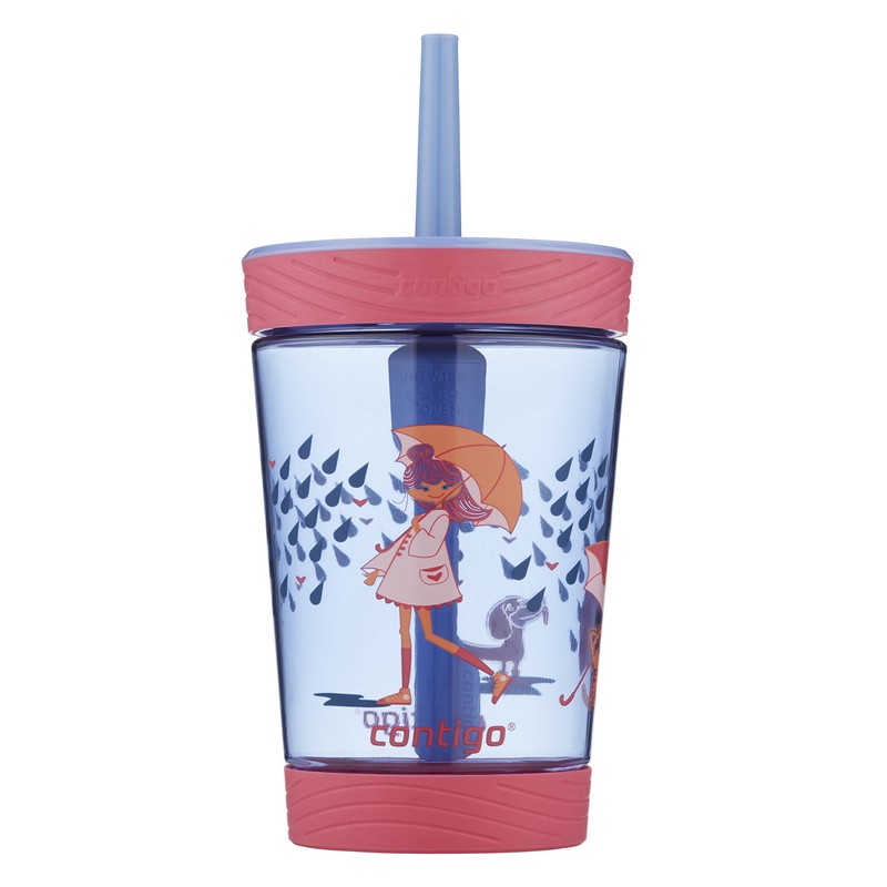 Contigo Vaso con popote Tritan a prueba de derrames para niños, 414.03 ml, con brillo rosa, Wink with Raining Cats Dogs, 396.89 g, 1