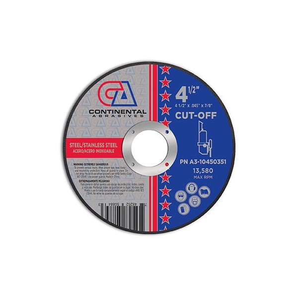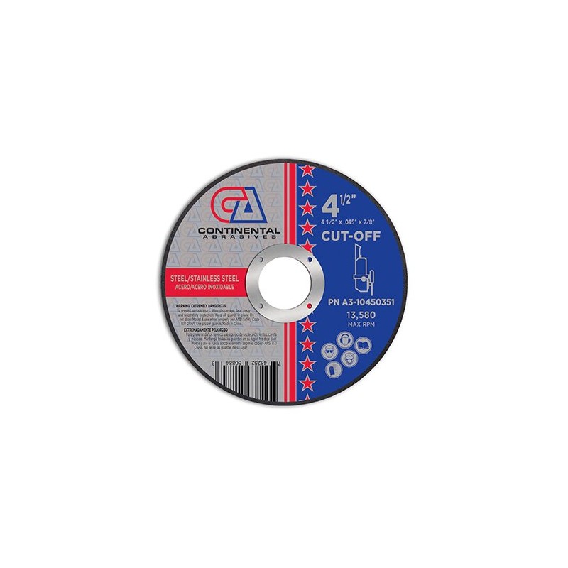 Continental Abrasives 4-1/2" x .045 x 7/8" - Metal Cutting (25 / Box)