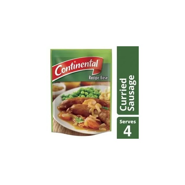 In just a few easy steps, create a delicious mid-week meal the whole family will enjoy, with the help of Continental. This Curried Sausages recipe base is made up of a selection of finely ground spices which come together to make a dish the whole family will enjoy. Ready in just 35 minutes, this dish serves four people. All of our Continental Recipe Bases contain no artificial colours, flavours and added MSG, and are made with real ingredients, simply dried and combined to create a perfectly balanced flavour for your favourite dish. All you need is beef sausages, onion, tomato sauce and carrots to create this delicious dish. Serve with mashed potato and peas for a complete mea