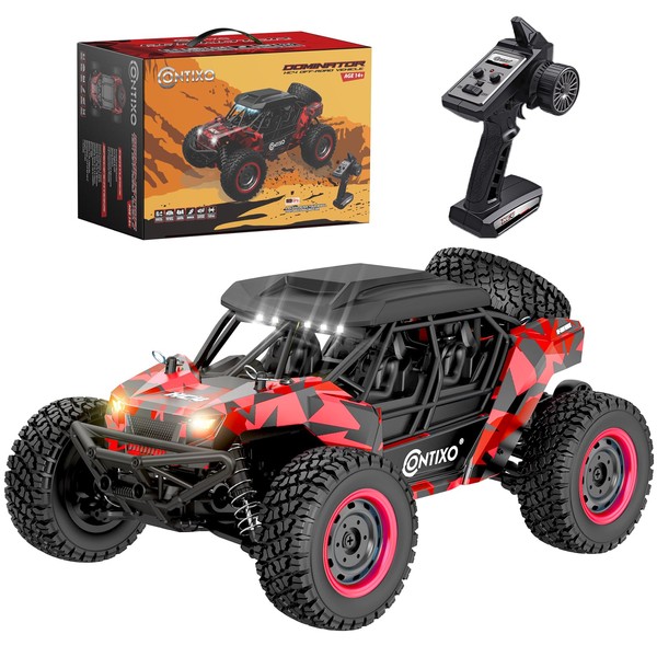 Contixo HC4A Kids Remote Control Car - 1:16 25 MPH 4WD All Terrain Off Road RC Truck with LED Lights, 2.4GHz Remote, Shock Absorption & Waterproof, High-Speed Electric Vehicle Gift for Boys 4-7, Red