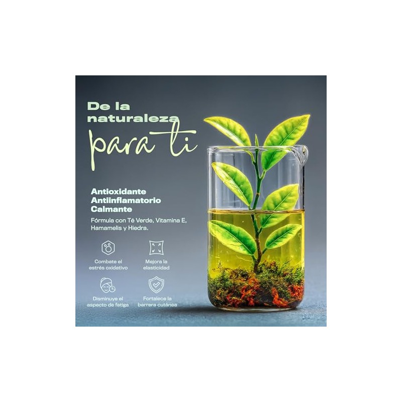 Contorno de Ojos en Gel Anti-Ojeras, Bolsas y Arrugas | Antioxidante, Hidratante, Reafirmante y Antiinflamatorio con Té Verde, Vitamina E y Hamamelis | Punta Metálica Efecto Frío 15 g