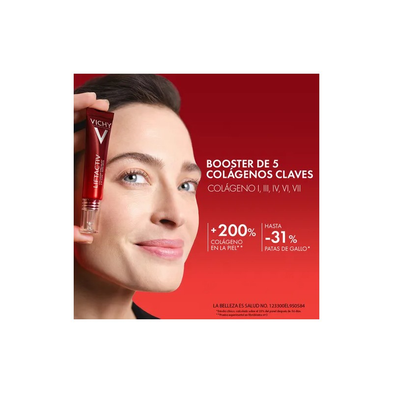 El Contorno de Ojos Liftactiv Collagen Specialist de Vichy es tu aliado esencial para combatir los signos de la edad, especialmente aquellos causados por la pérdida de colágeno en la delicada zona de los ojos. Este innovador tratamiento antiarrugas y antiedad está formulado para ofrecer una corrección 360° y una mirada visiblemente más joven y radiante.
