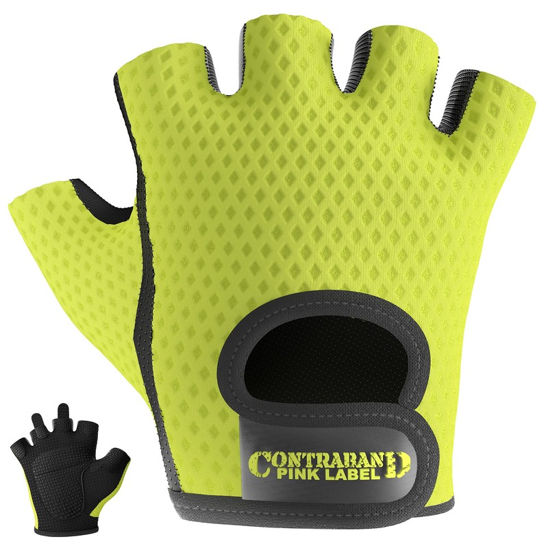 Contraband Pink Label 5307 Womens Designer Workout Gloves | Low Sweat Diamond Mesh Fabric w/Grip-Lock™ Silicone Palm (Green, Medium)