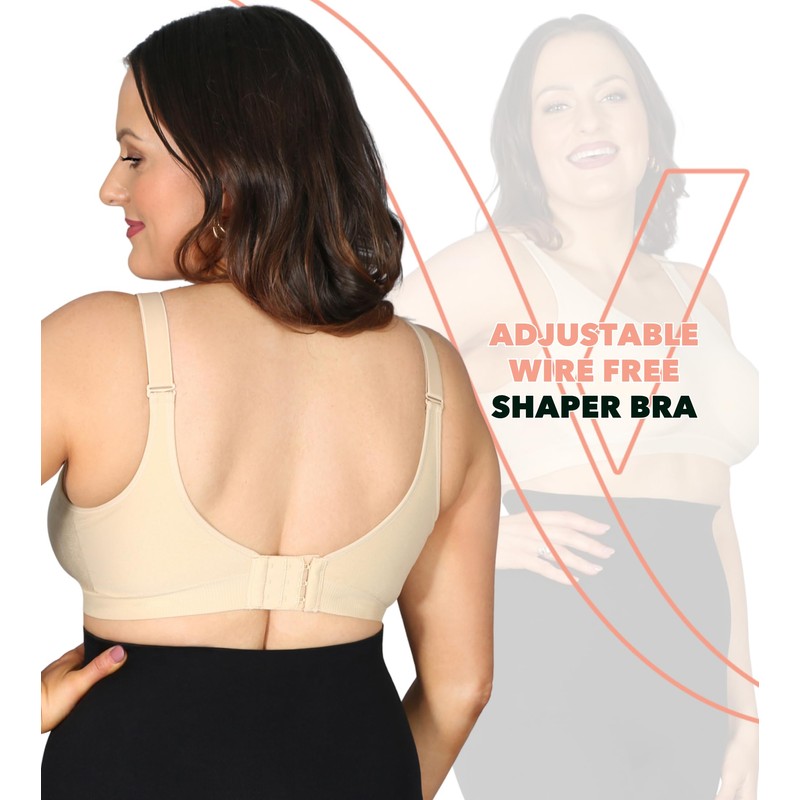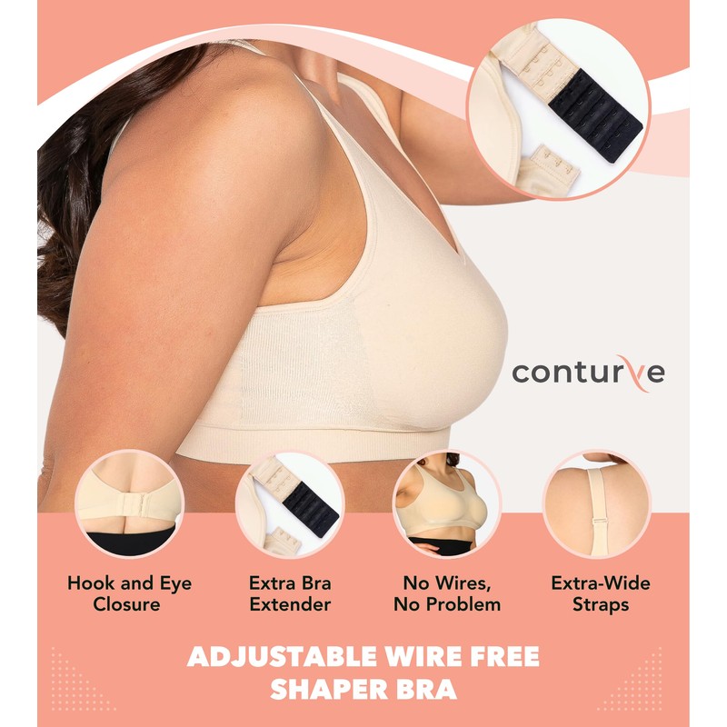 Conturve Wirefree High Support Bra Adjustable Wire Free Shaper Bra (Cups AA-FF) +with Extra Bra Extender Offers Back Support Biege