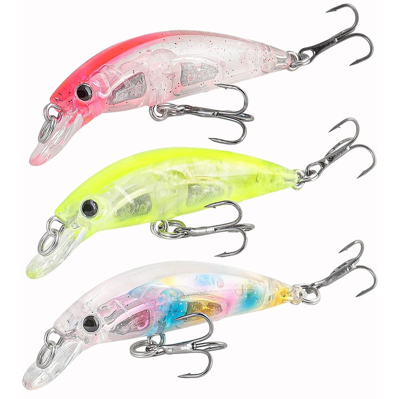 • Type: Heavy Sinking Color: Clear Pink/Clear Candy/Clear Yellow; Set Quantity: 3 Pieces