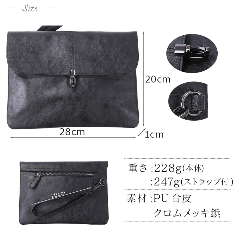 CONTYU Men's Clutch Back, Strap, Casual & Formal Use, Black, PU Leather, 6 Pockets, Top Lid, Black